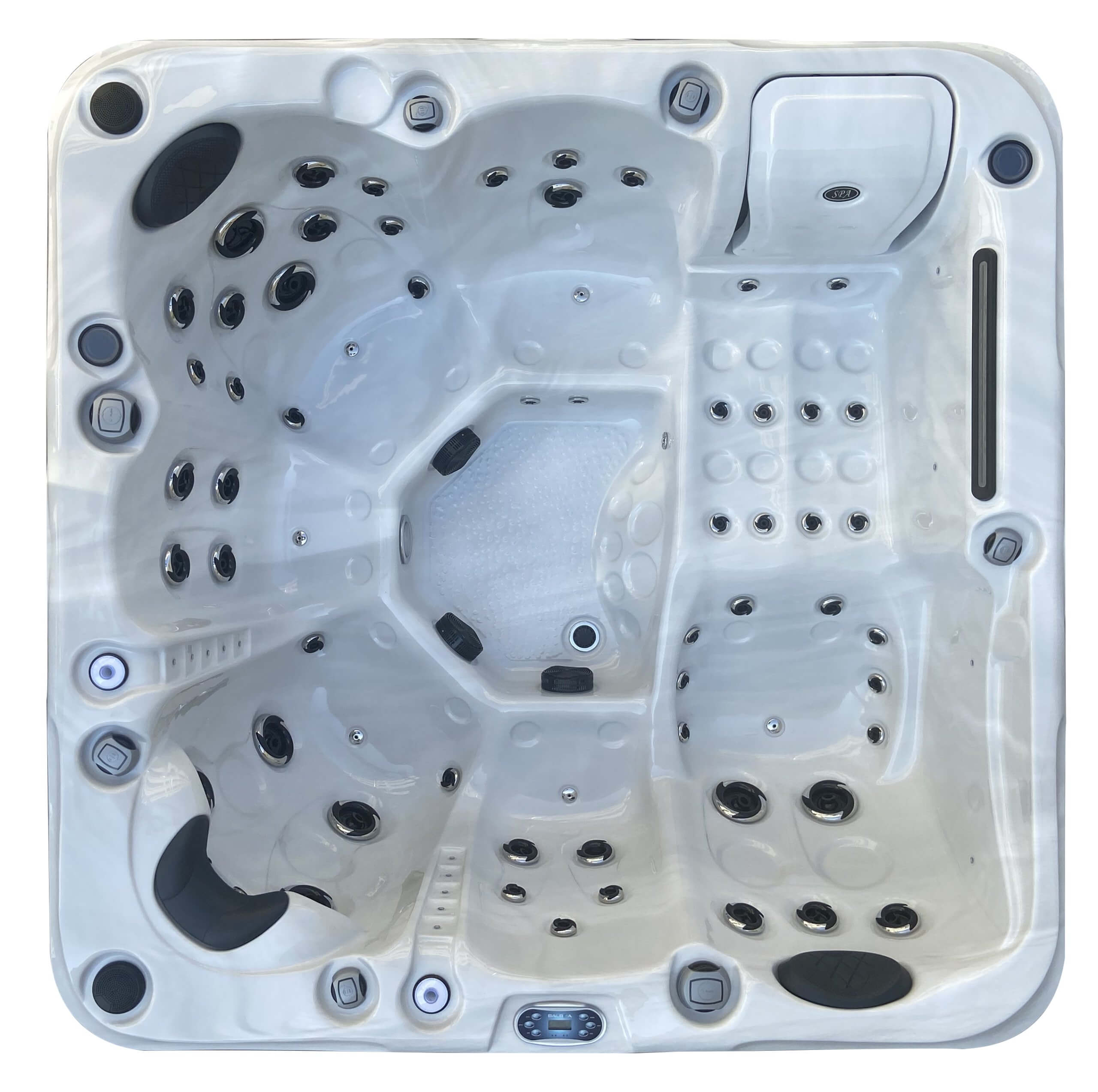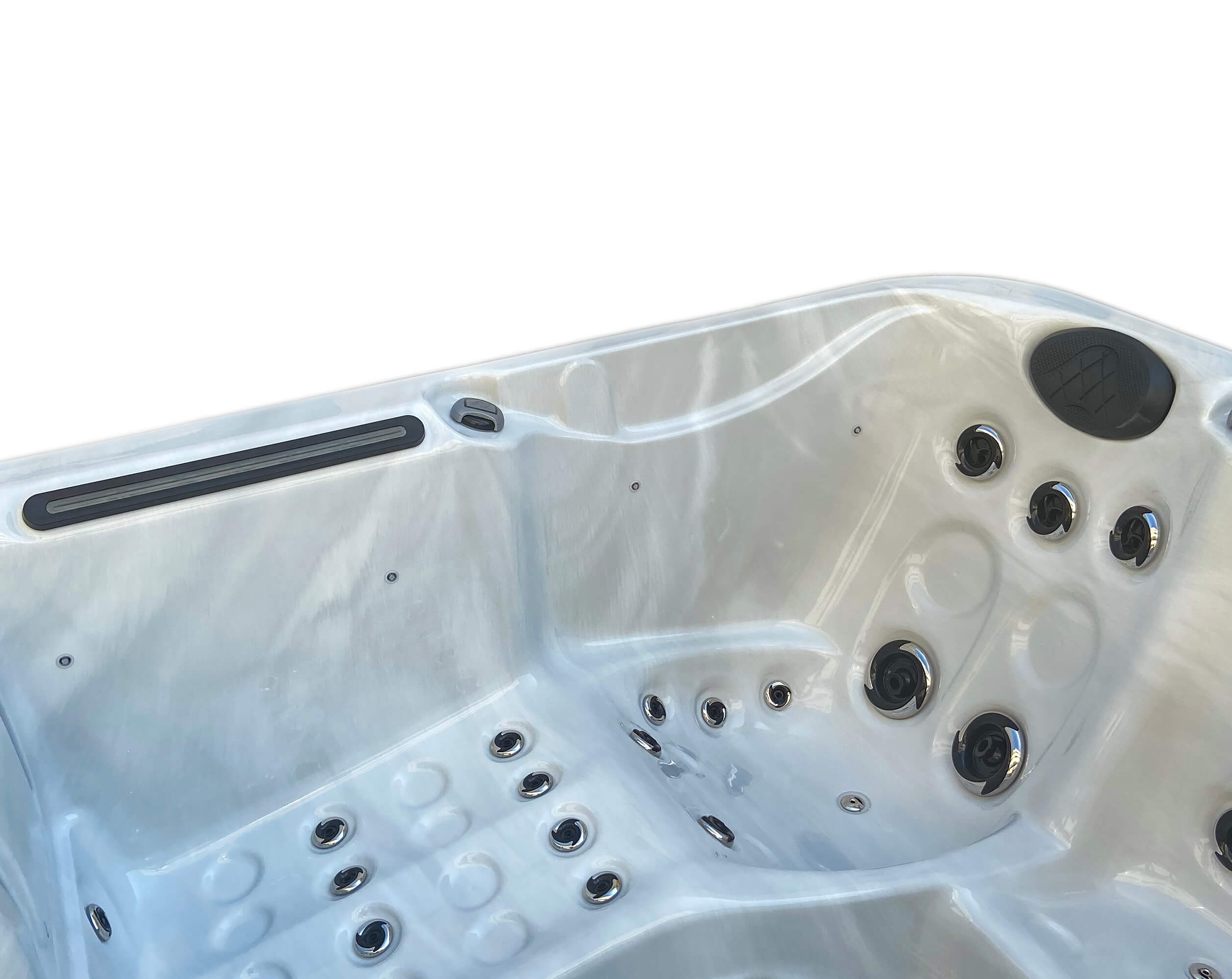 Conçu avec des matériaux haut de gamme comme l’acrylique ARISTECH et une structure inox avec silentblocs acoustiques, ce spa silencieux s’intègre parfaitement en intérieur comme en extérieur. Il est équipé d’un système de filtration performant, d’un ozonateur, d’un pack LED intégral (fond, jets, cascades et angles), de 2 cascades relaxantes et d’un système audio HD pour une ambiance immersive.